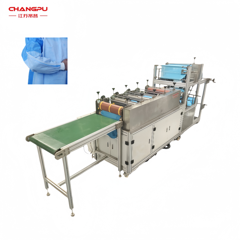 手术衣袖套机 当前位置: 首页 / 产品中心 / 医疗用品设备 手术衣袖套机全自动手术衣袖套制造机,可高效生产 80 克以下手术衣袖套,高质高产低成本,可替代手工。设备实现原料入料到成品计数全流程自动化,采用大功率超声波焊接搭配电热合,固定袖套与橡筋。具备变频调速、自动恒温、多规格多松紧带适配、可定制等特点。 上一个产品:超声波袖筒机 下一个产品:无纺布医生帽机